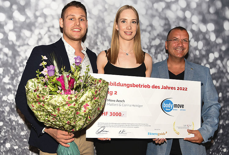 Der 2. Platz haben sich das Body Move Aesch geschnappt. Dafür sind der Berufsbildner Linus Maillard, Inhaber Dario Rago und die Lernende Corina Heiniger gekommen.