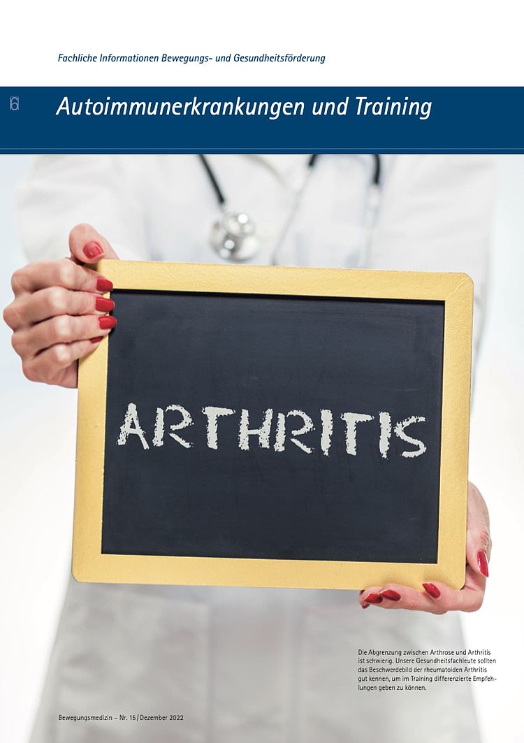 Autoimmunerkrankungen hindern nicht an einem gesundheits- orientierten Training. Gewisse Einschränkungen müssen jedoch bekannt sein, und das Training sollte entsprechend angepasst und gesteuert werden. Dieser Artikel nimmt die rheumatoide Arthritis genauer unter die Lupe.
